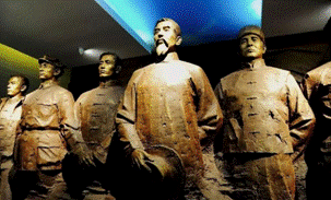 甘肃建党的创始人张一悟同志与革命先烈雕像收藏于张一悟纪念馆正厅